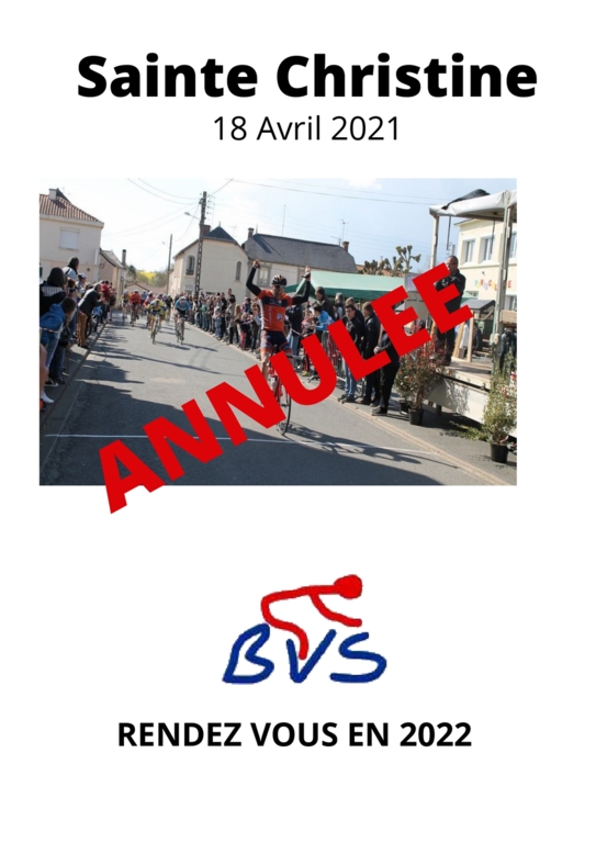 Malheureusement, le Beaupréau velo sport est contraint d'annuler les courses Pass cyclisme et Minimes prévues le dimanche 18 Avril à Sainte Christine (Commune de Chemillé en Anjou).