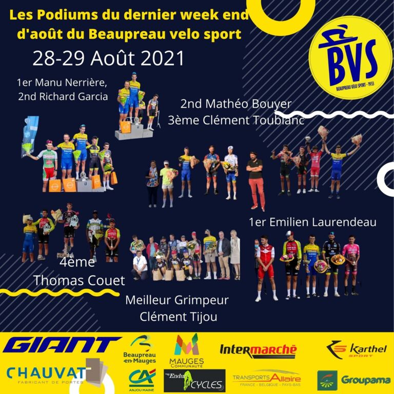 le Beaupréau velo sport sur les Podiums sur ce dernier week end d'Août !