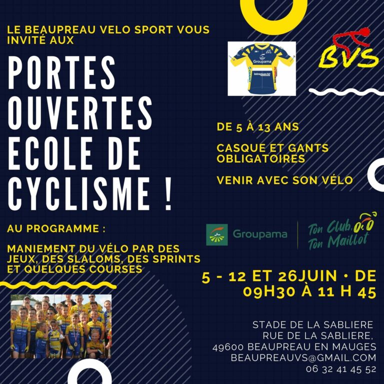 Le Beaupreau Vélo sport vous propose de découvrir son école de cyclisme les 5 , 12 et 26 juin 2021