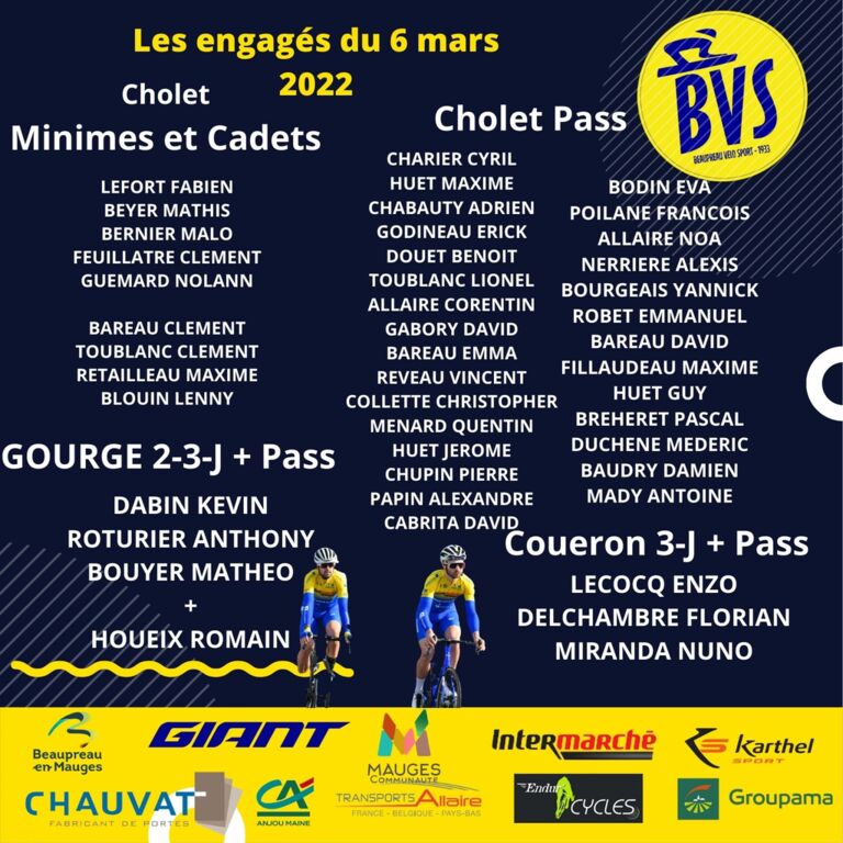 Toujours à Cholet, en Minimes, pour sa première course route Clément Feuillatre se classe 9ème et Fabien Lefort 13ème. Bravo à nos 5 jeunots !
