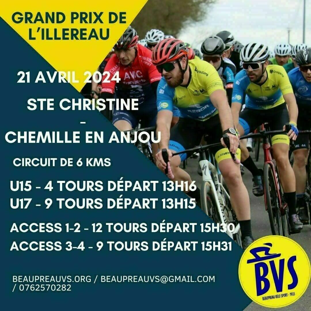 Le Beaupreau velo sport organise le dimanche 21 avril la 11ème édition du grand prix de l'Illereau à Sainte Christine - Chemillé en Anjou (49).
